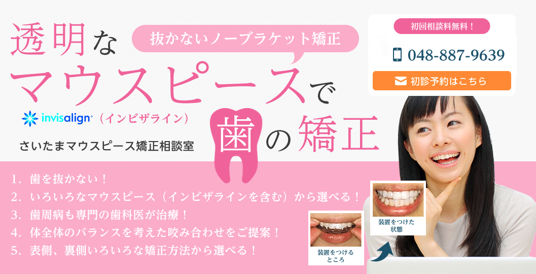 歯に接着させる装置を使わないので、頬の内側や唇、下などの粘膜を傷つけることはありません。また新しいマウスピースを装着したとき、歯が動き出す2〜3日は痛みが出る場合がありますが、次第になくなっていきます。
